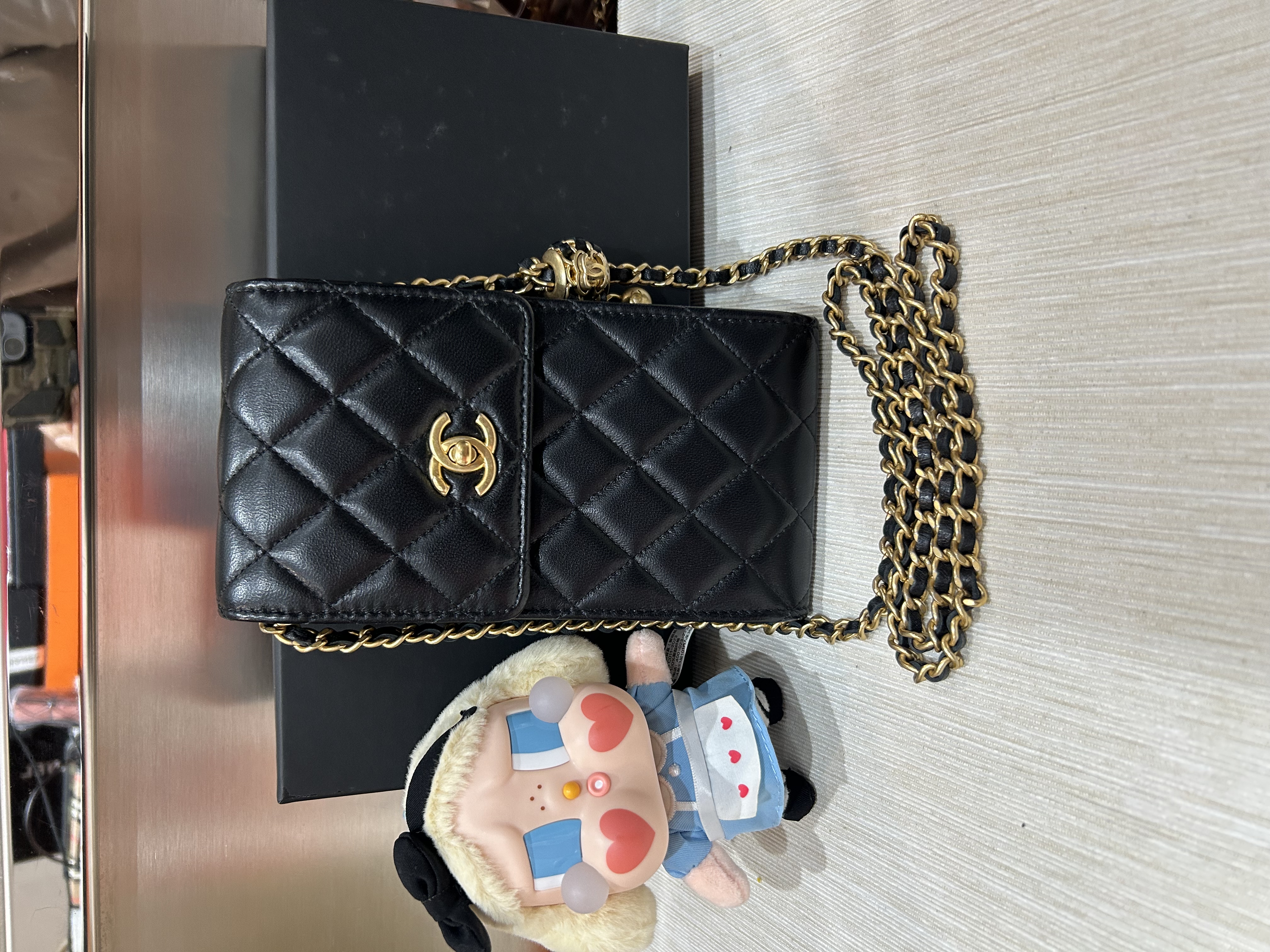Chanel CC filigree Vanity Small 17cm 深藍色荔枝牛皮金鏈,100%Authentic, 98%New ✅25Card ✅Key lock✅Dust bag✅Box