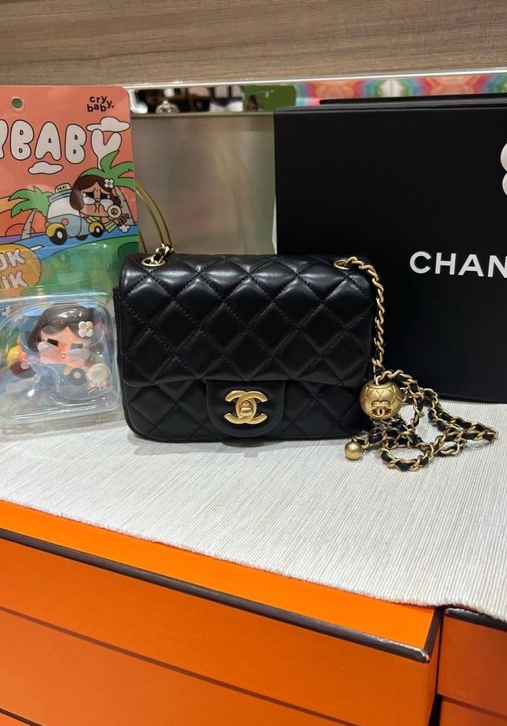 Chanel mini flap with pearl crush 金球方胖子 100%Authentic,99%new unused ✅收據副本✅晶片✅dust bag ✅box