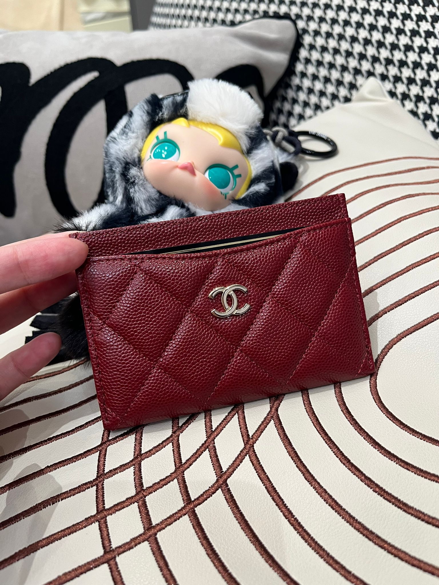 未使用品Chanel card holder 酒紅色荔枝牛皮 100%Authentic,unused✅28card✅box