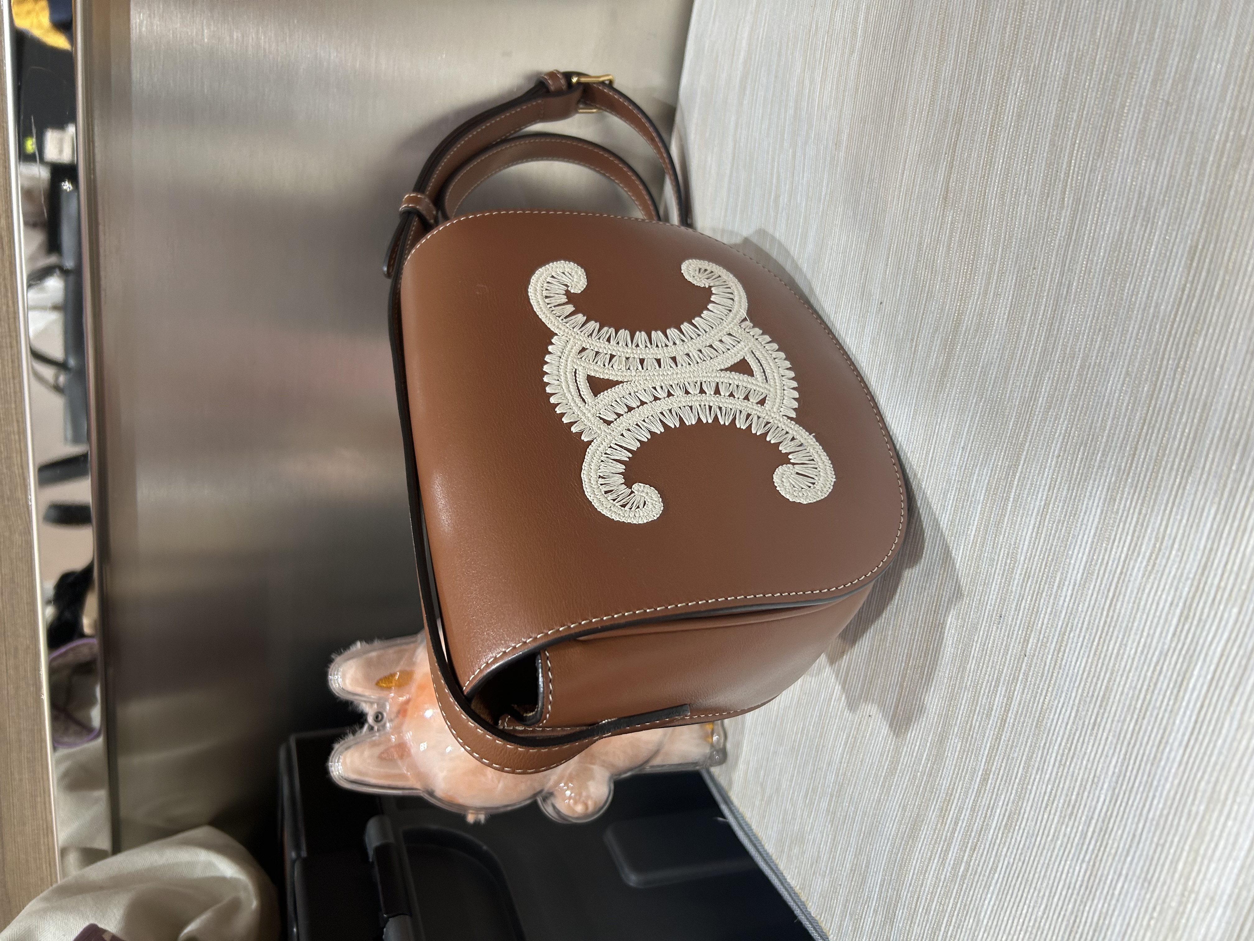 Celine Folco Cuir Triomphe光滑牛皮革馬鞍包,刺繡凱旋門 100%Authentic,98%new ✅dust bag ✅booklet 專門店售價$21,500