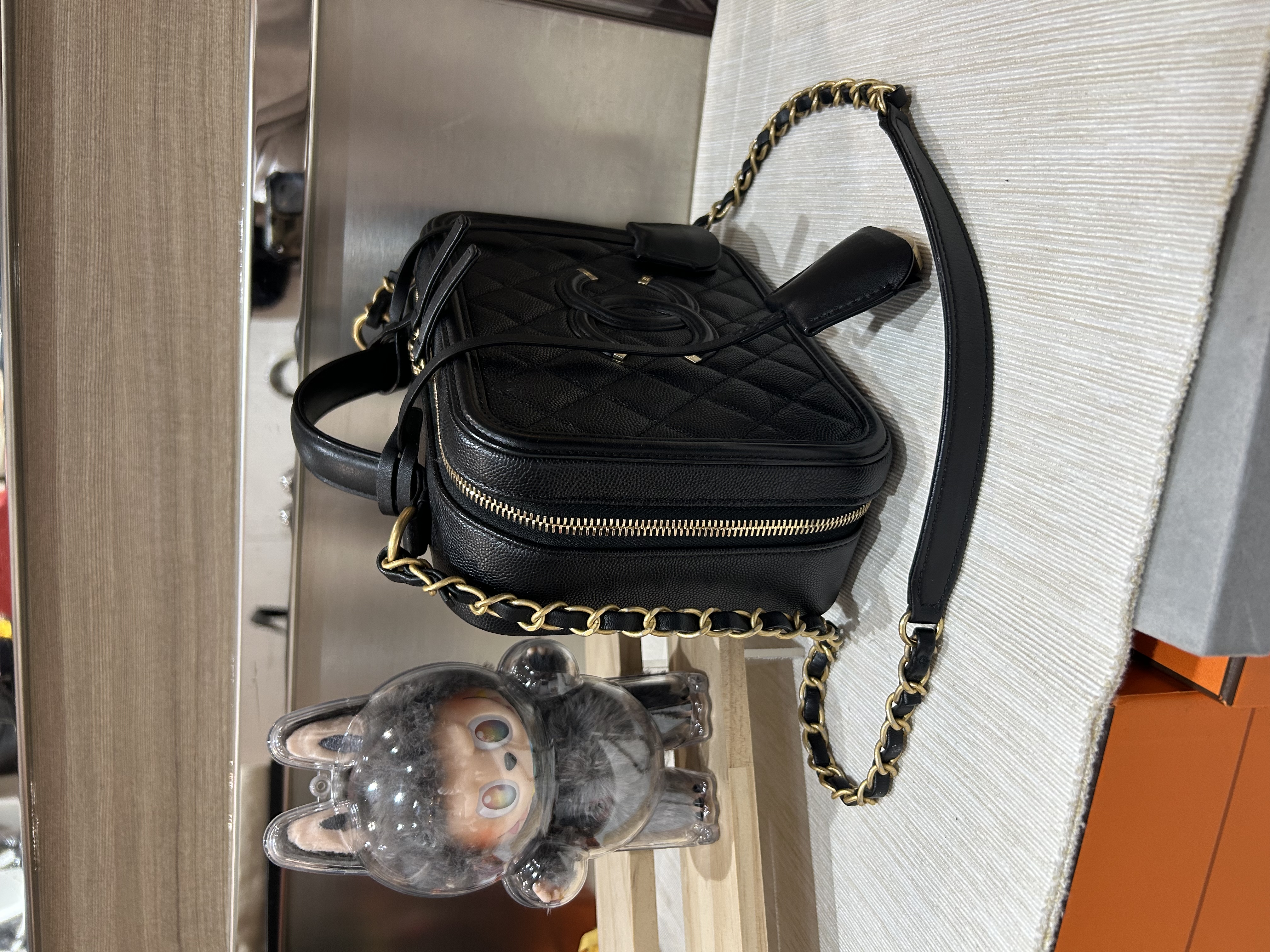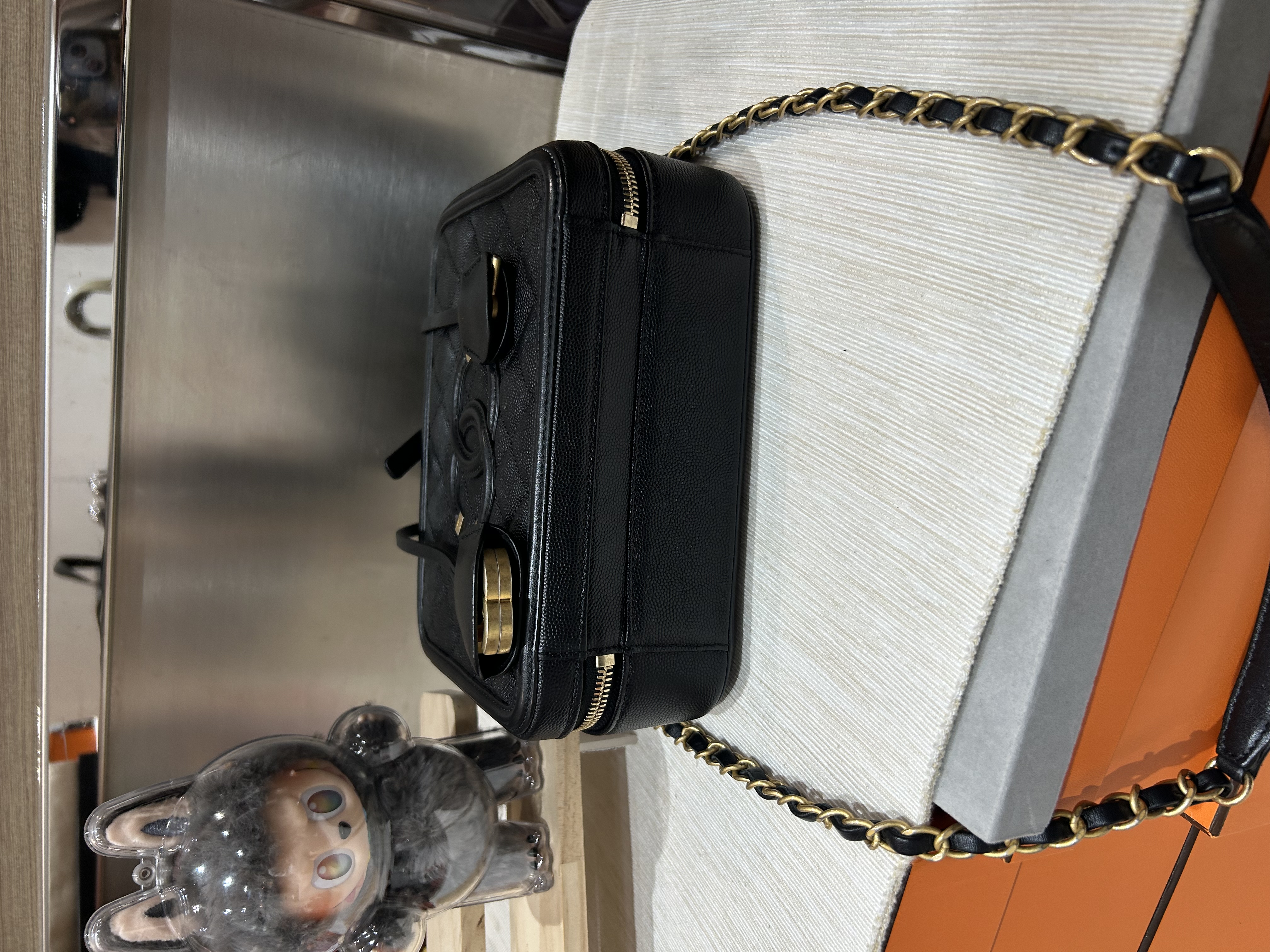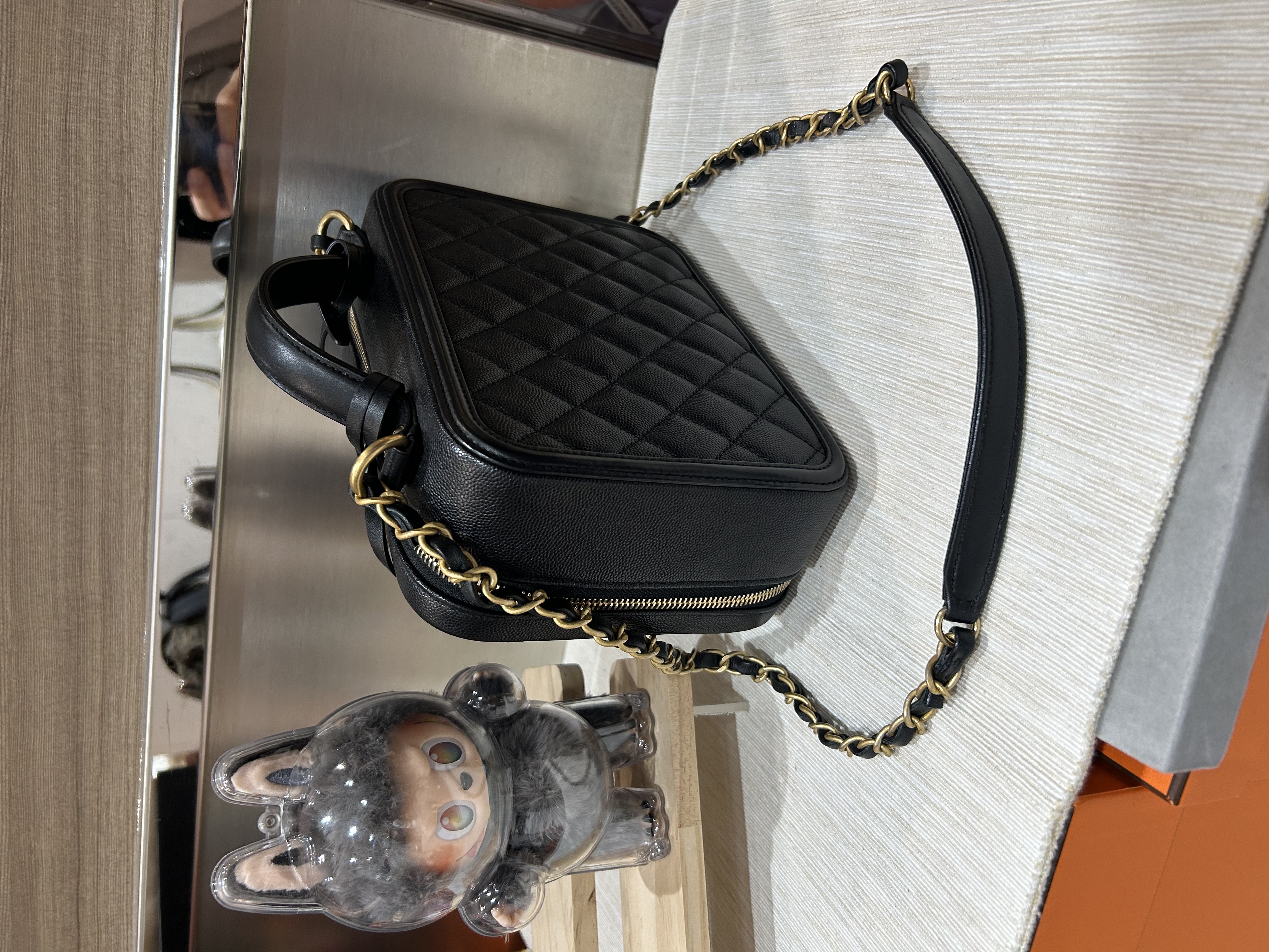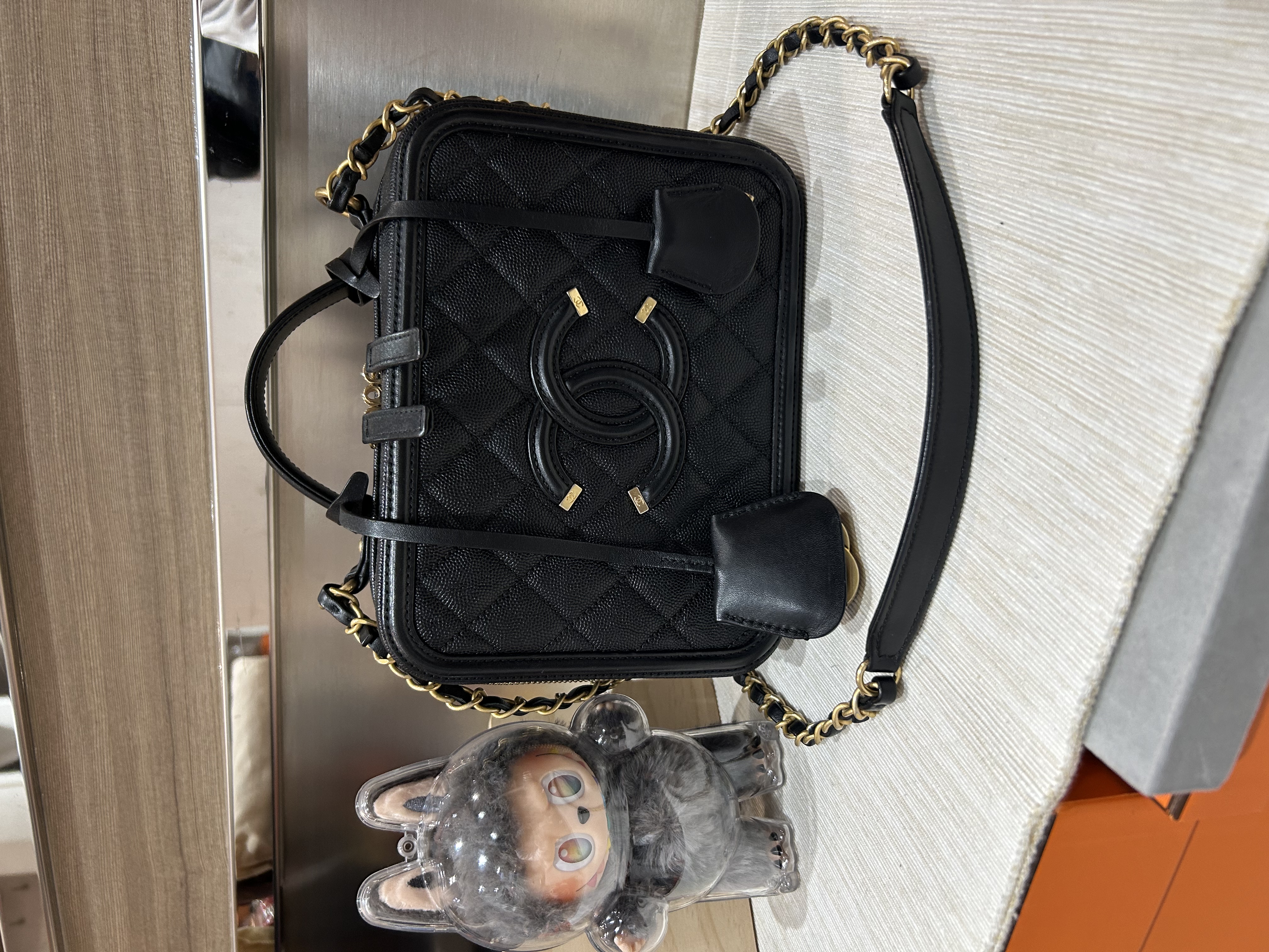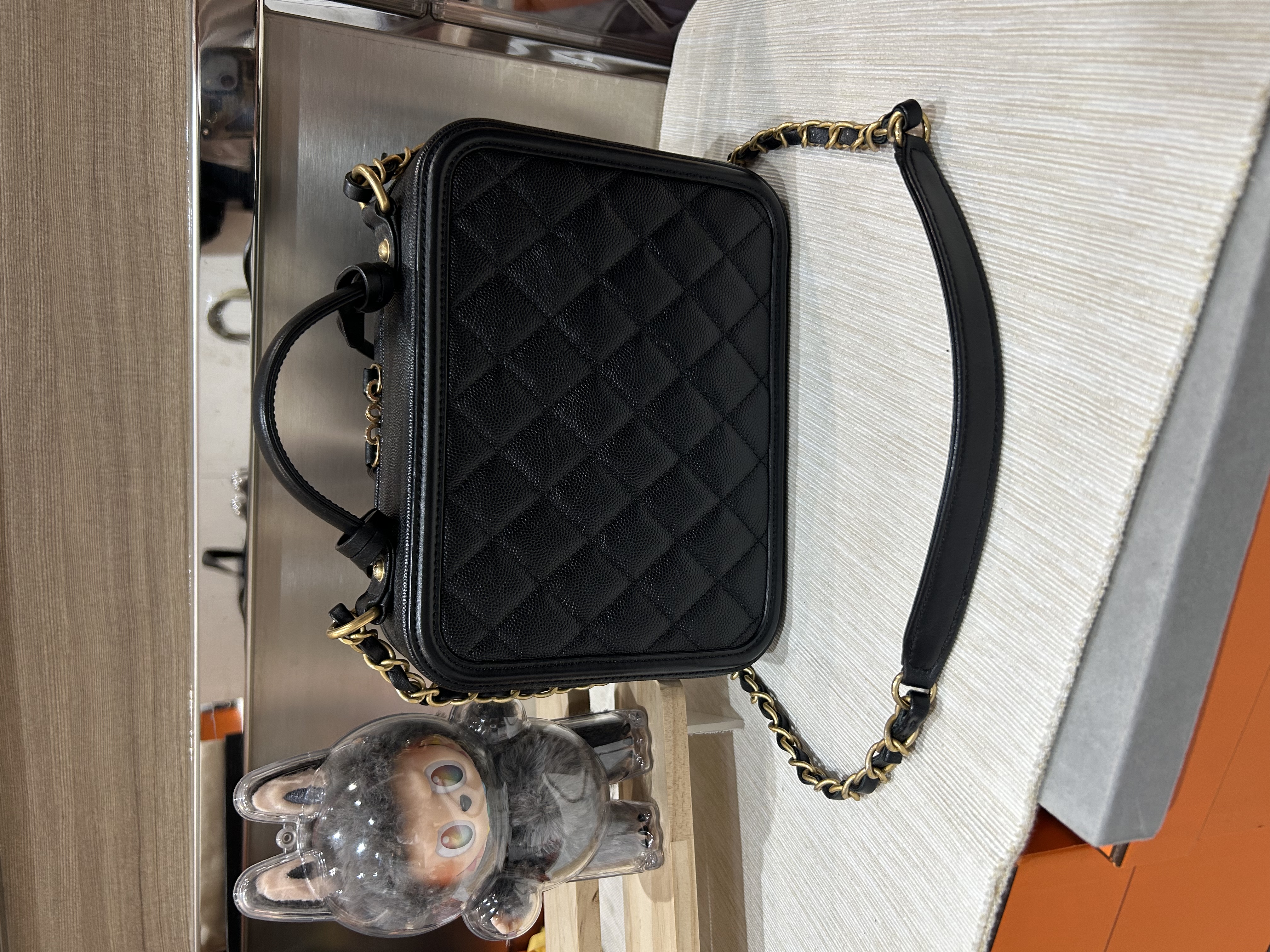 Chanel cc filigree vanity with chain 21cm 黑色荔枝牛皮金鏈 100%Authentic ,98%new ✅25card✅dust bag ✅盒