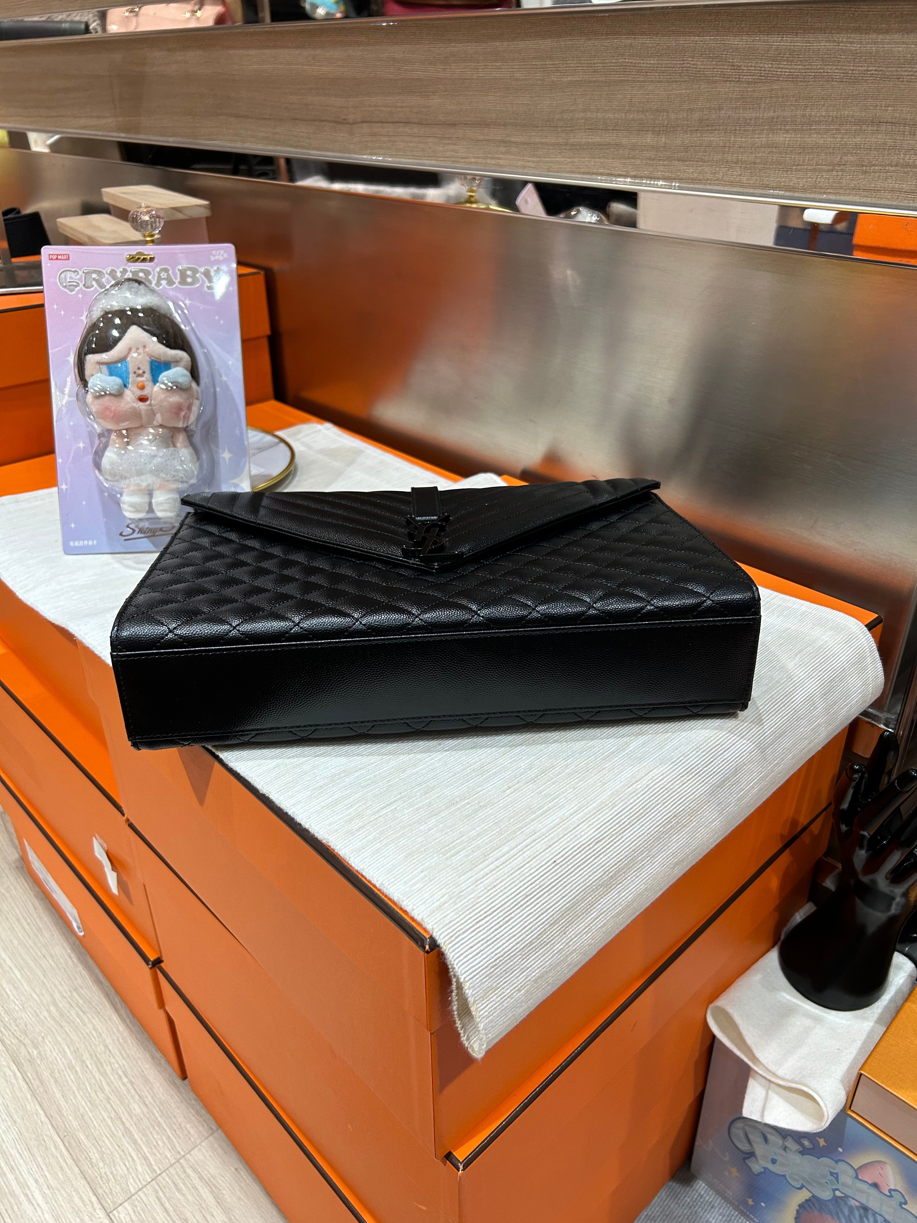 * **品牌:** YSL * **款式:** Envelope Large Flap Bag * **顏色:** So Black * **材質:** 牛皮 * **狀況:** 99%new unused * **價格:** $13800 * **配件:** Card, Booklet, Dust bag