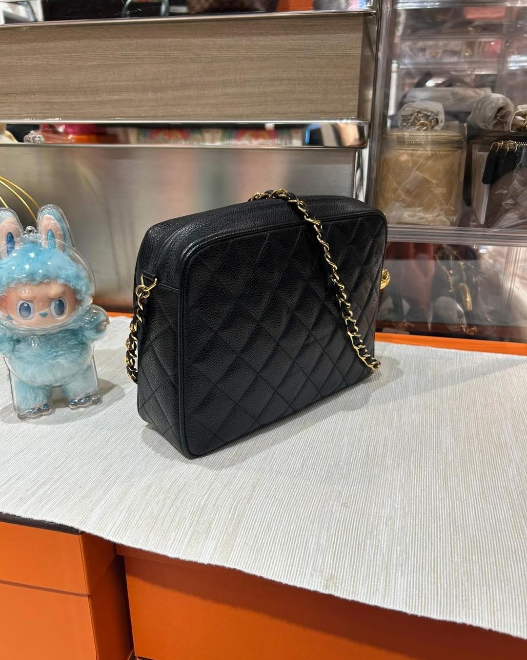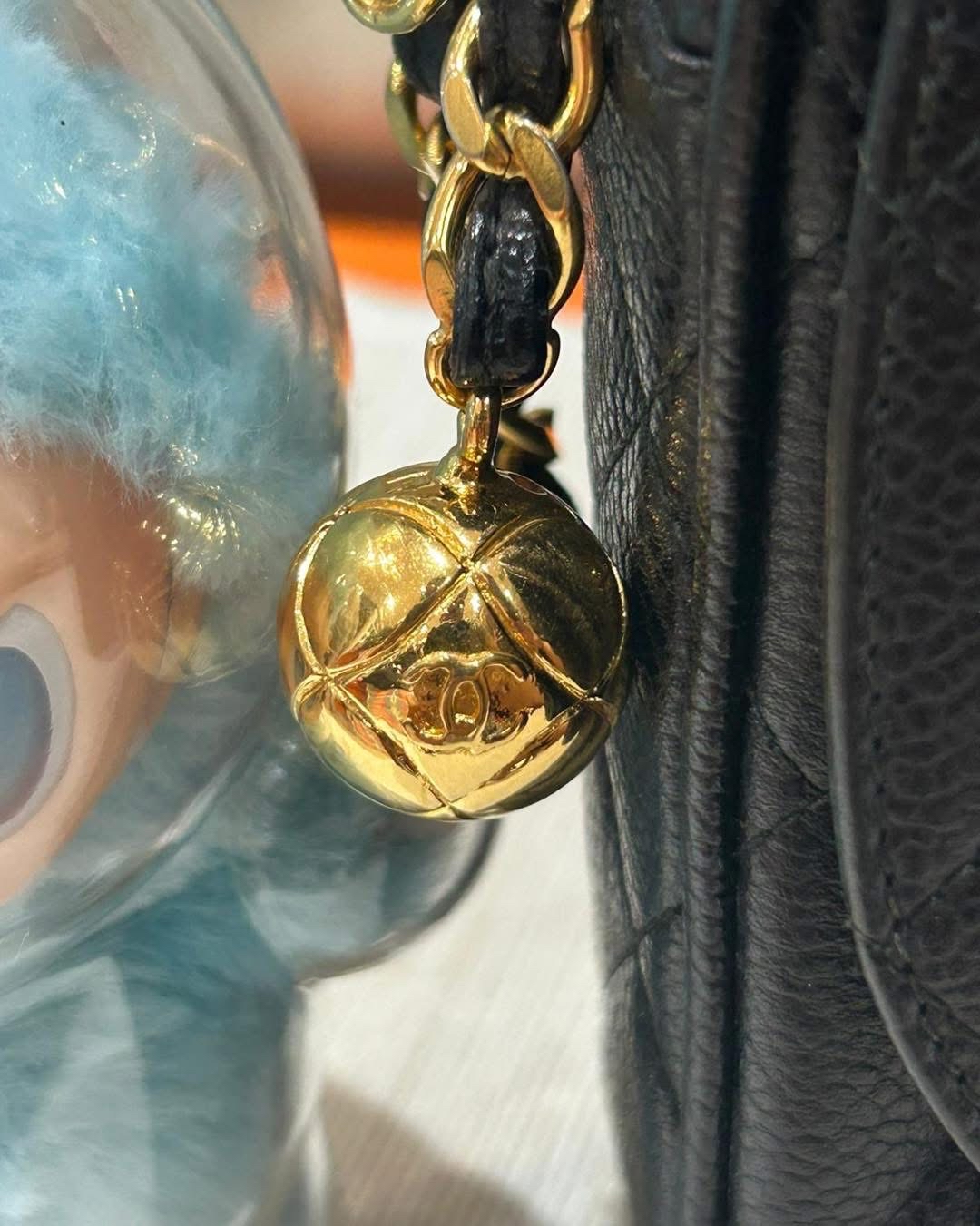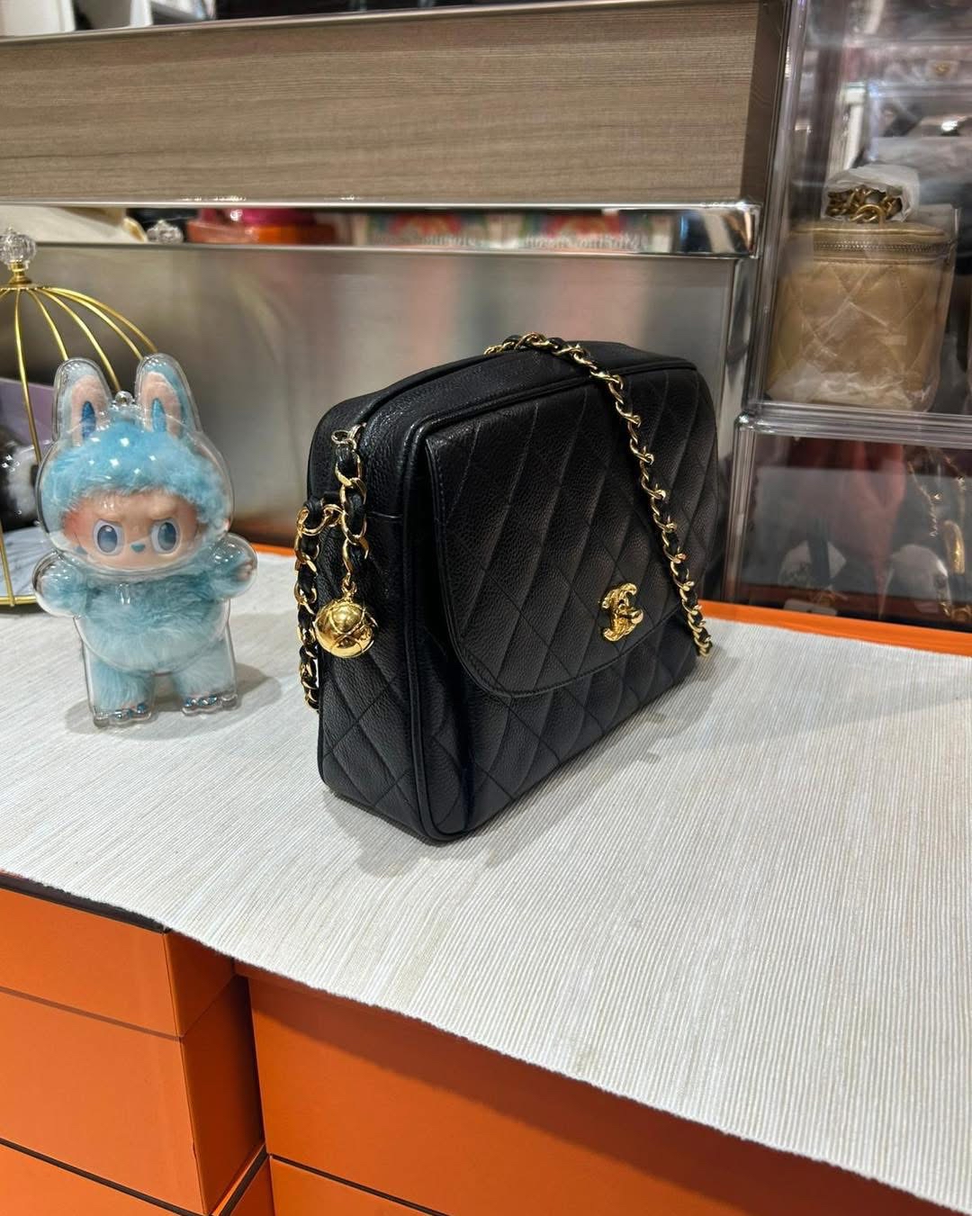 chanel vintage shoulder bag 黑色荔枝牛皮金球 100%Authentic, 90%new
