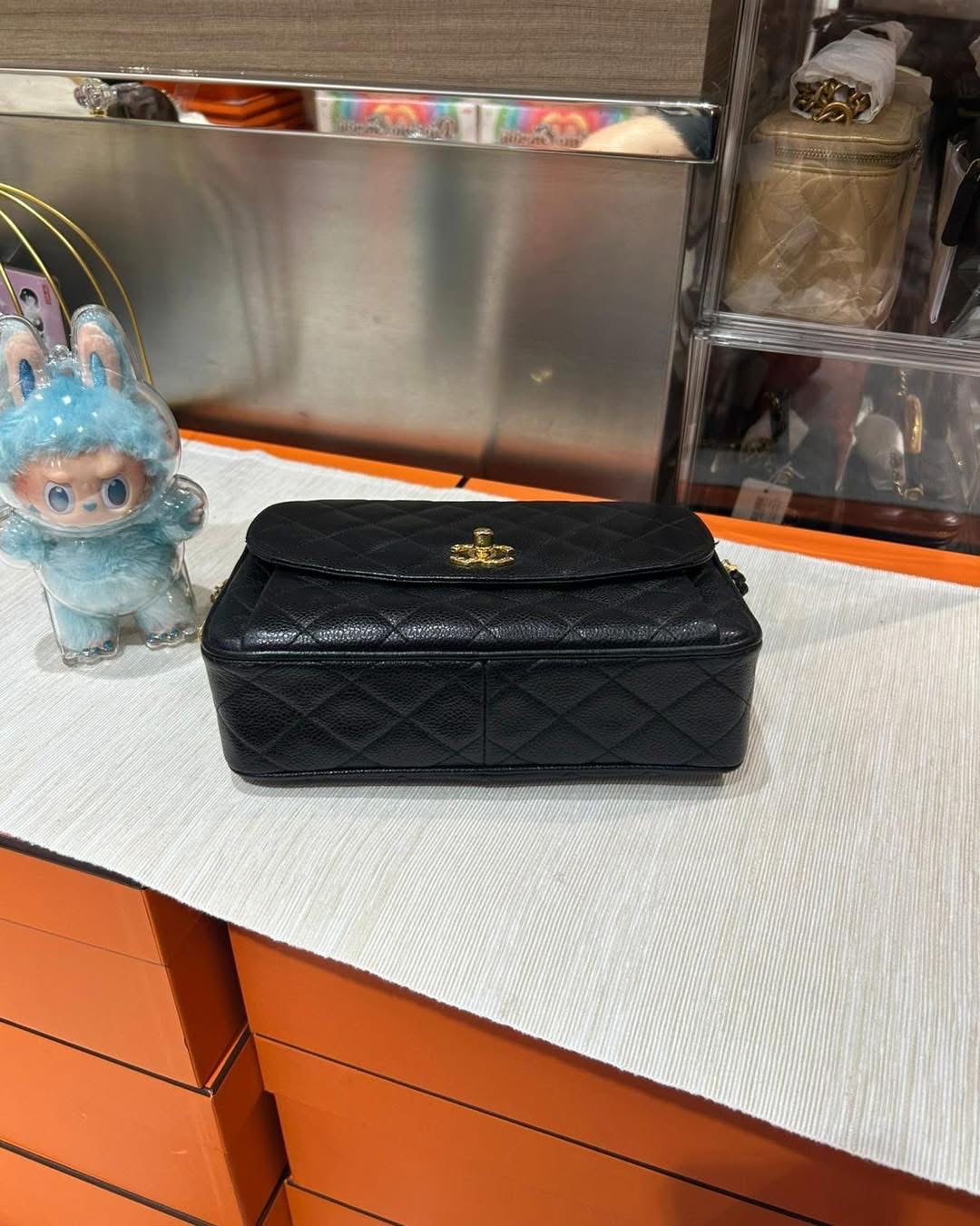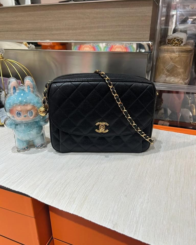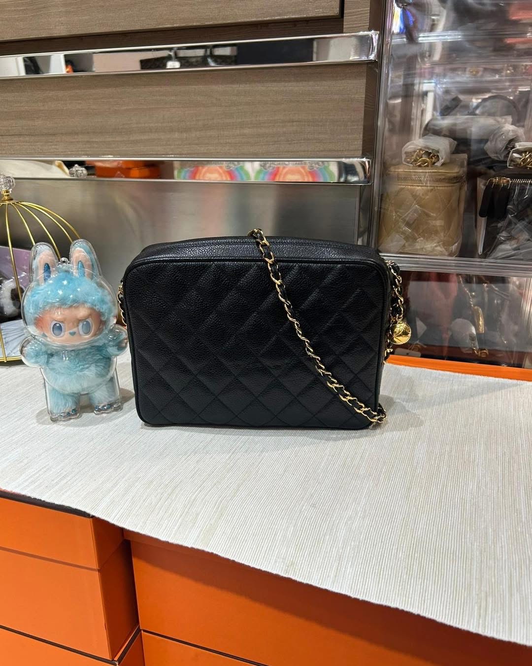 chanel vintage shoulder bag 黑色荔枝牛皮金球 100%Authentic, 90%new