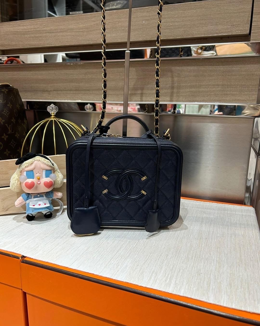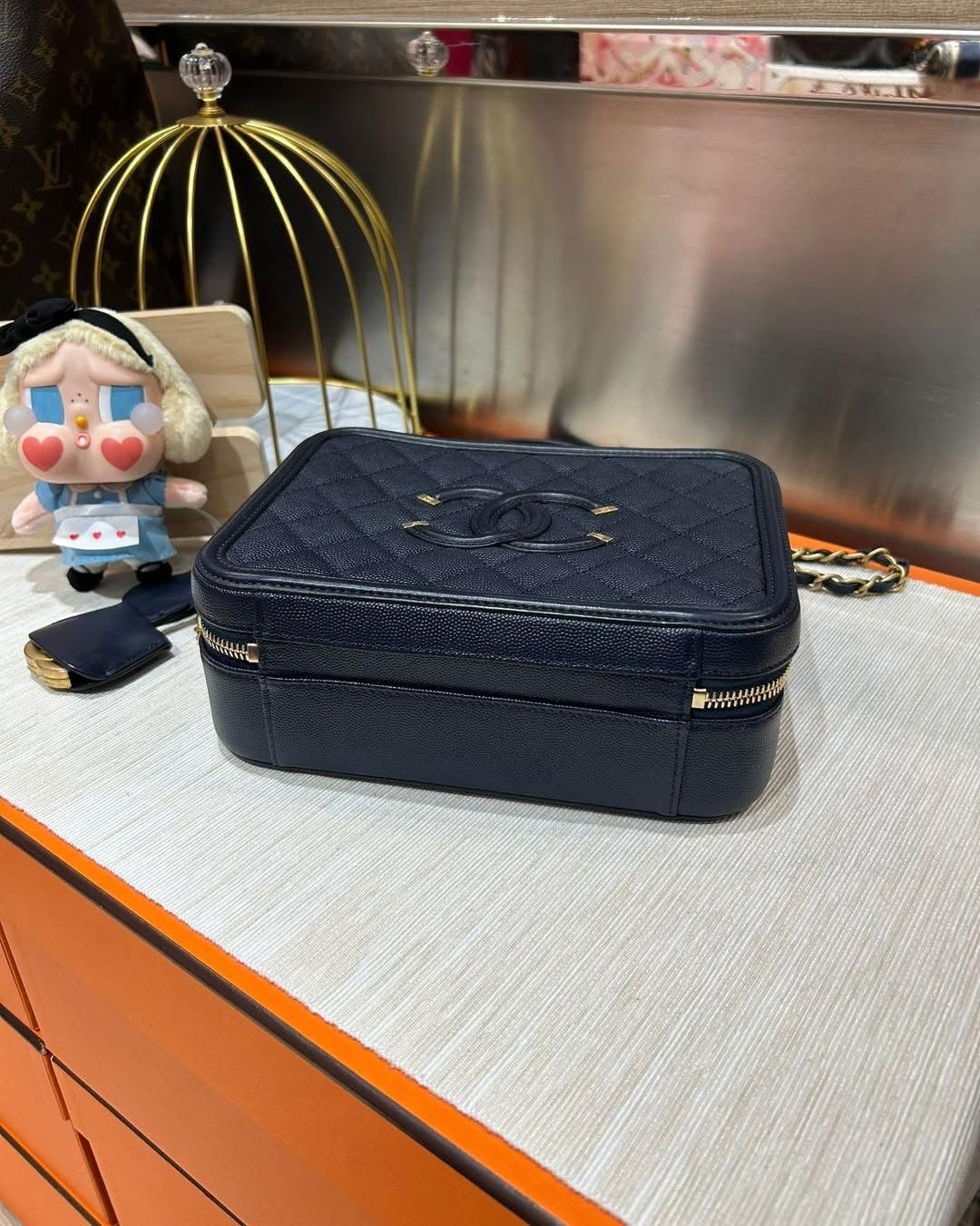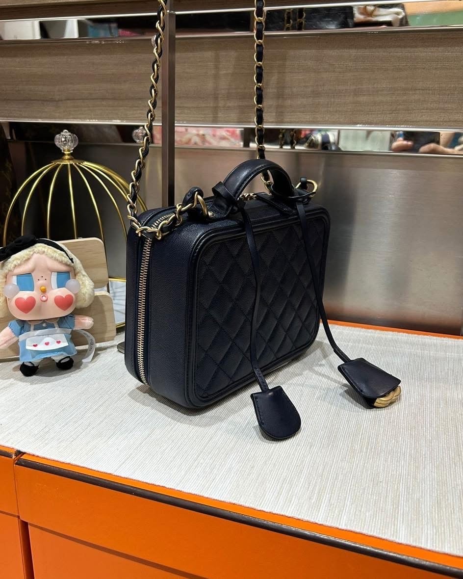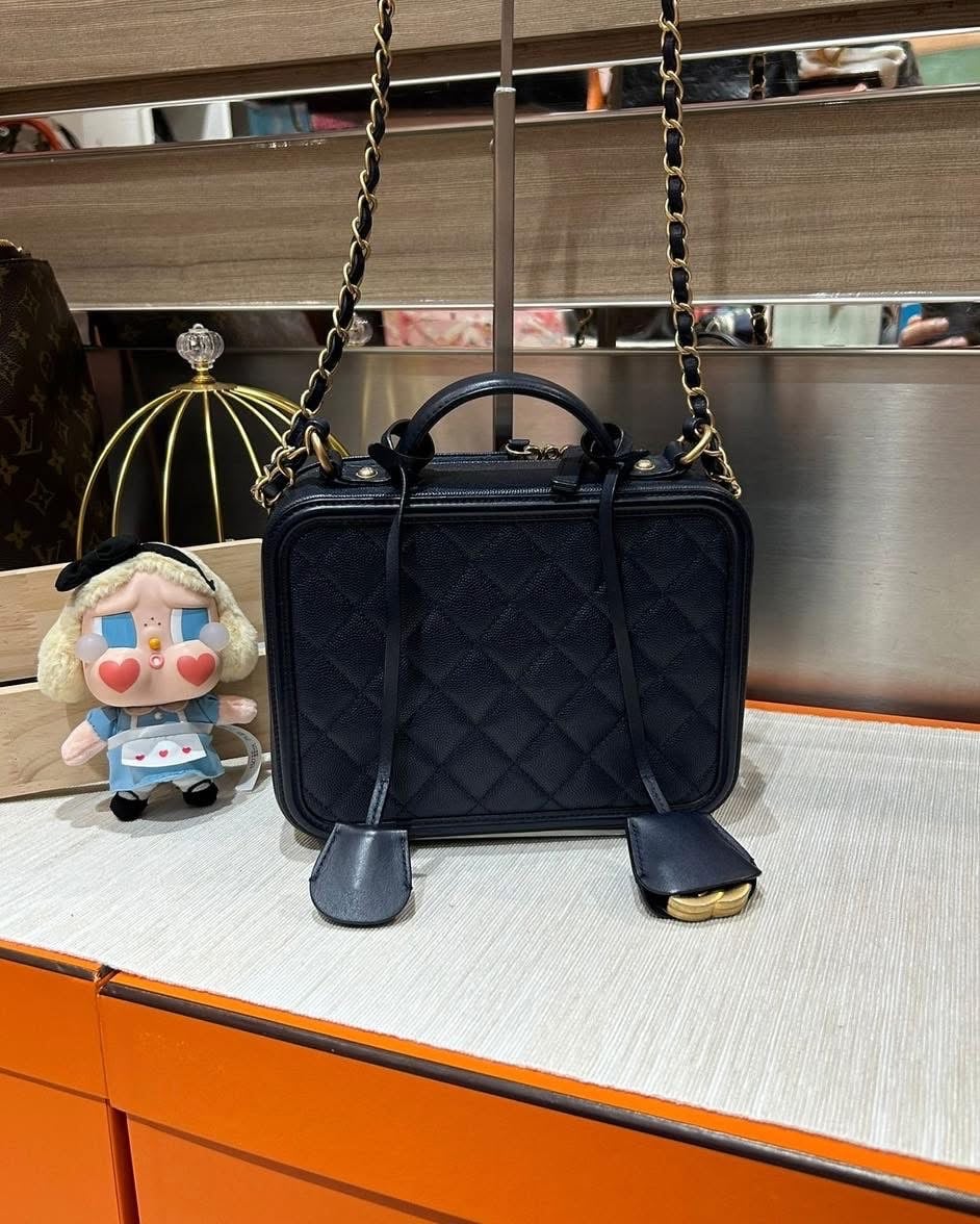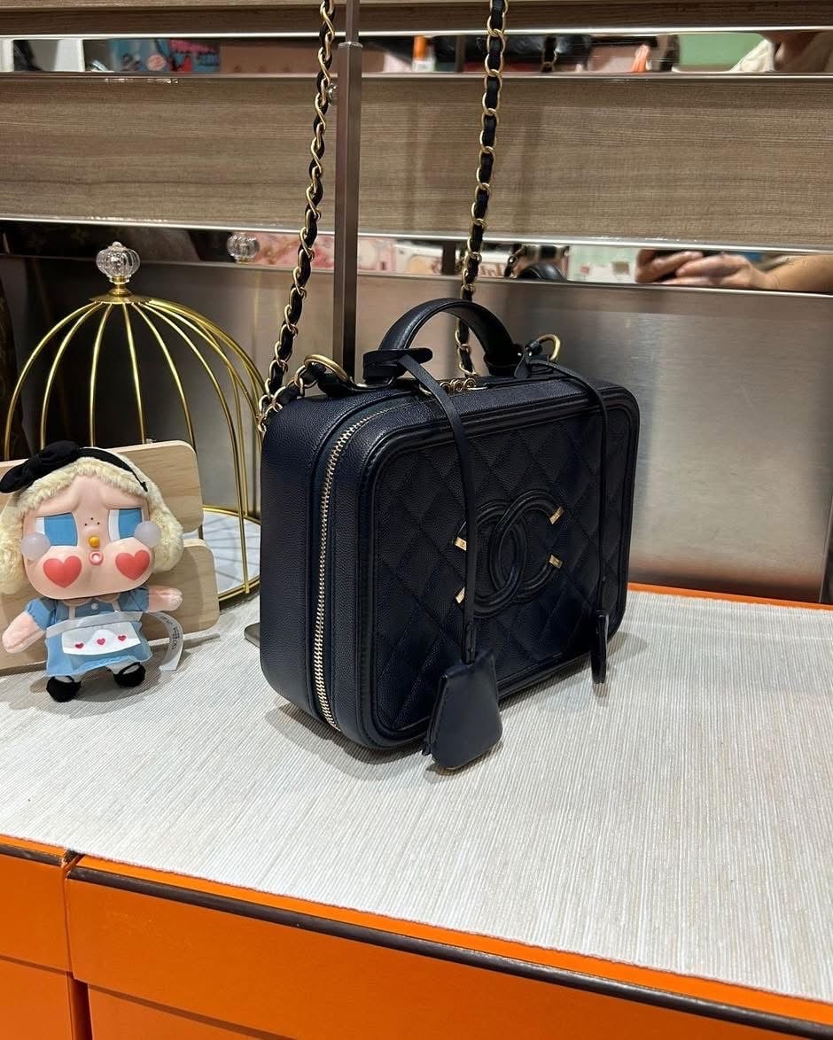 Chanel vanity cc filigree ,Medium navy 牛皮 100%Authentic ,98%new ✅26card✅dust bag✅box