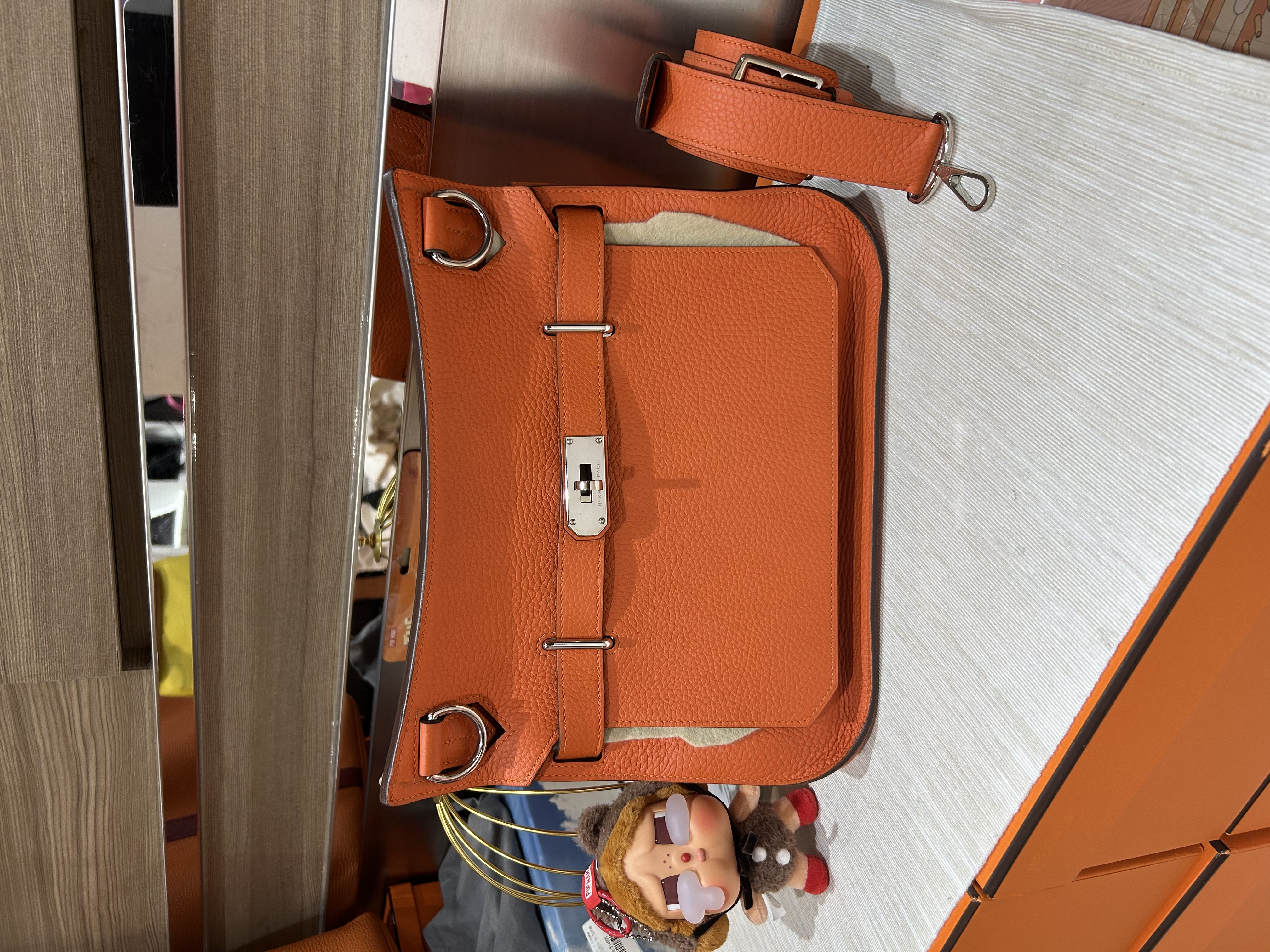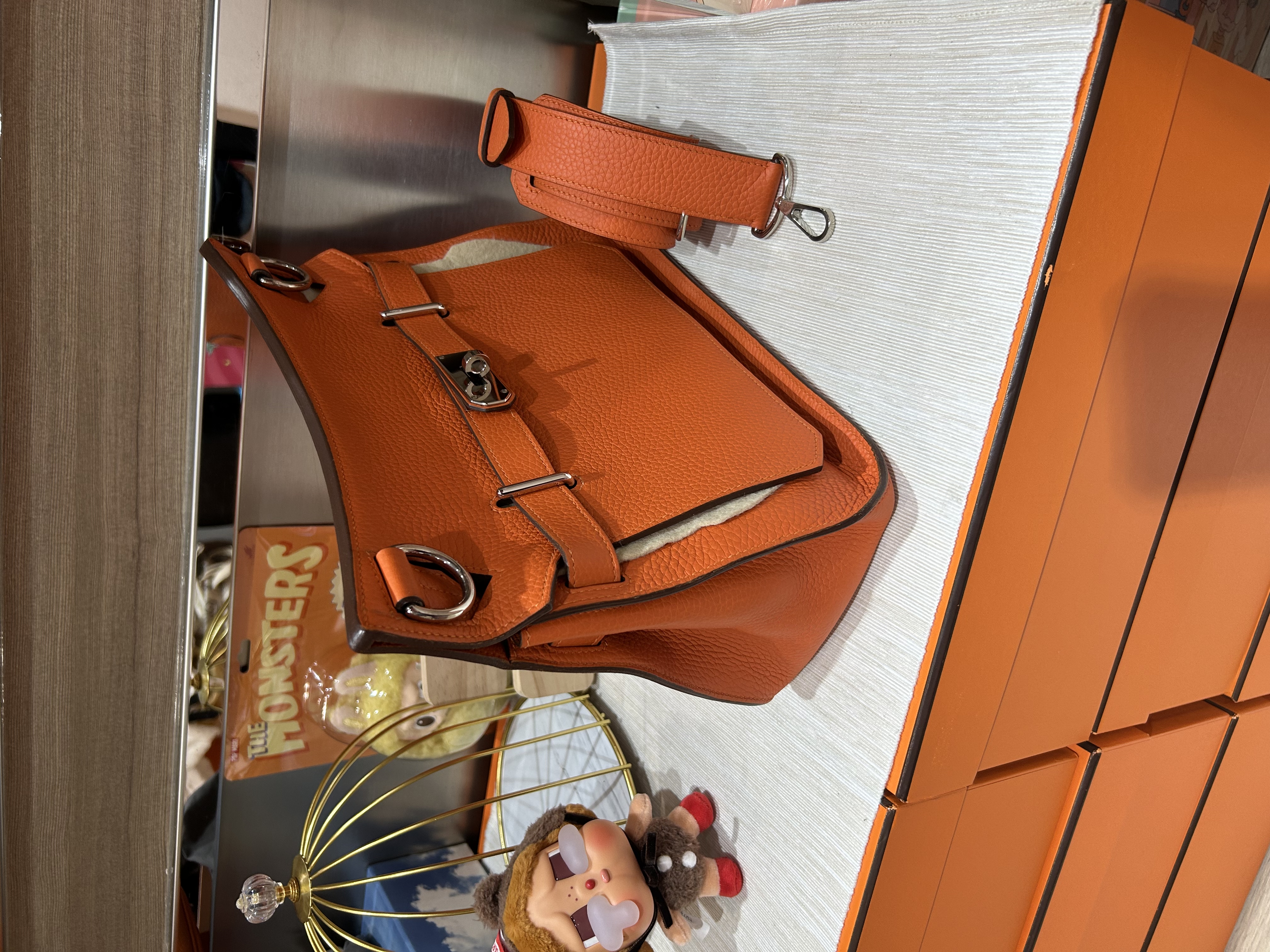 * **品牌:** Hermes * **款式:** Jypsiere 31 * **顏色:** 橙色銀扣 * **狀況:** 98%新 * **價格:** $30800 * **配件:** Dust bag,Box