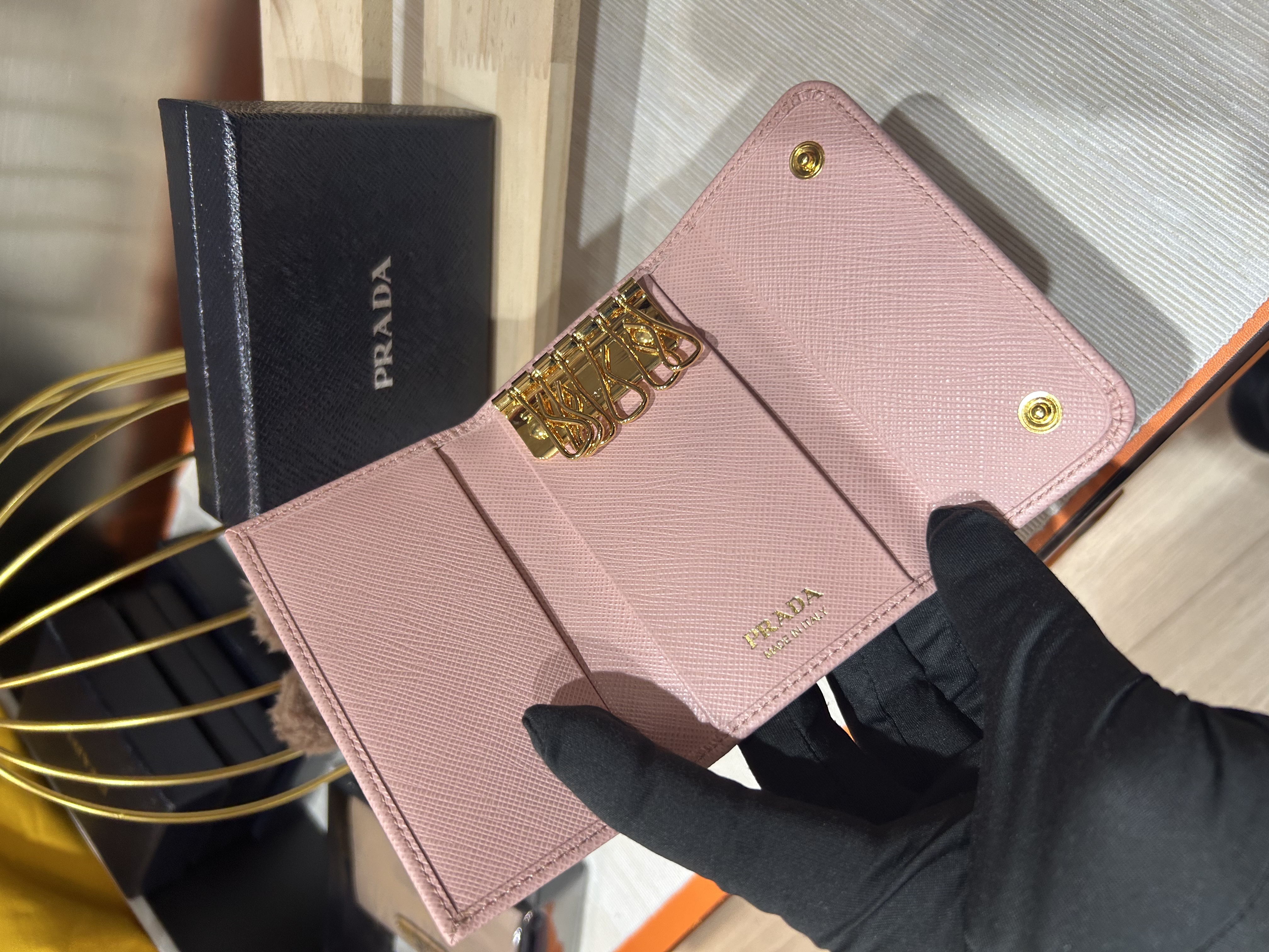 Prada Saffiano Calfskin Key holder 小牛皮鎖匙包 1PG222 100%Authentic,unused未使用 ✅保證卡✅盒