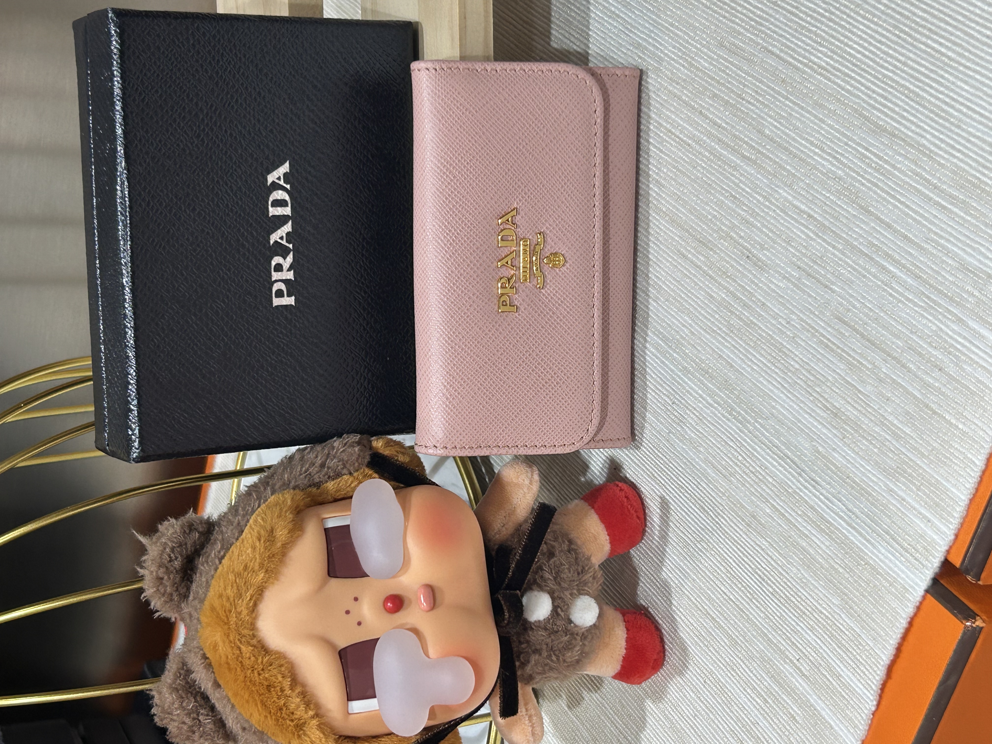 * **品牌:** Prada * **款式:** Key Holder * **顏色:** Pink * **材質:** 牛皮 * **狀況:** Unused 未使用品 * **價格:** $19800 * **配件:** 保證卡, Box 本店持有正貨商標,正品正貨 尖沙咀廣東道33號中港城商場UG42A 星期一至星期日(敬請預約) 歡迎TRADE IN, 寄賣 ,直收 Wa.me/85297388946