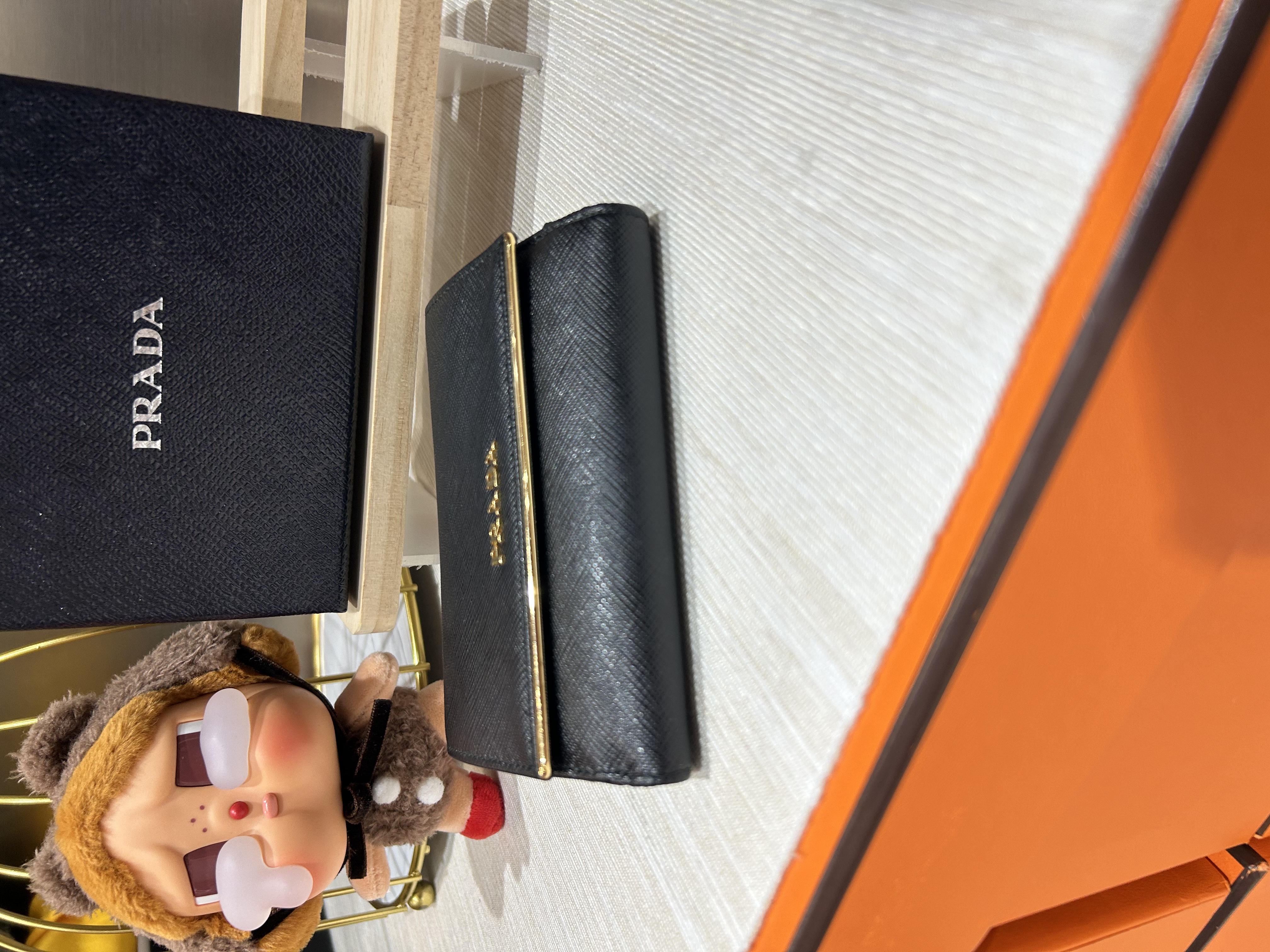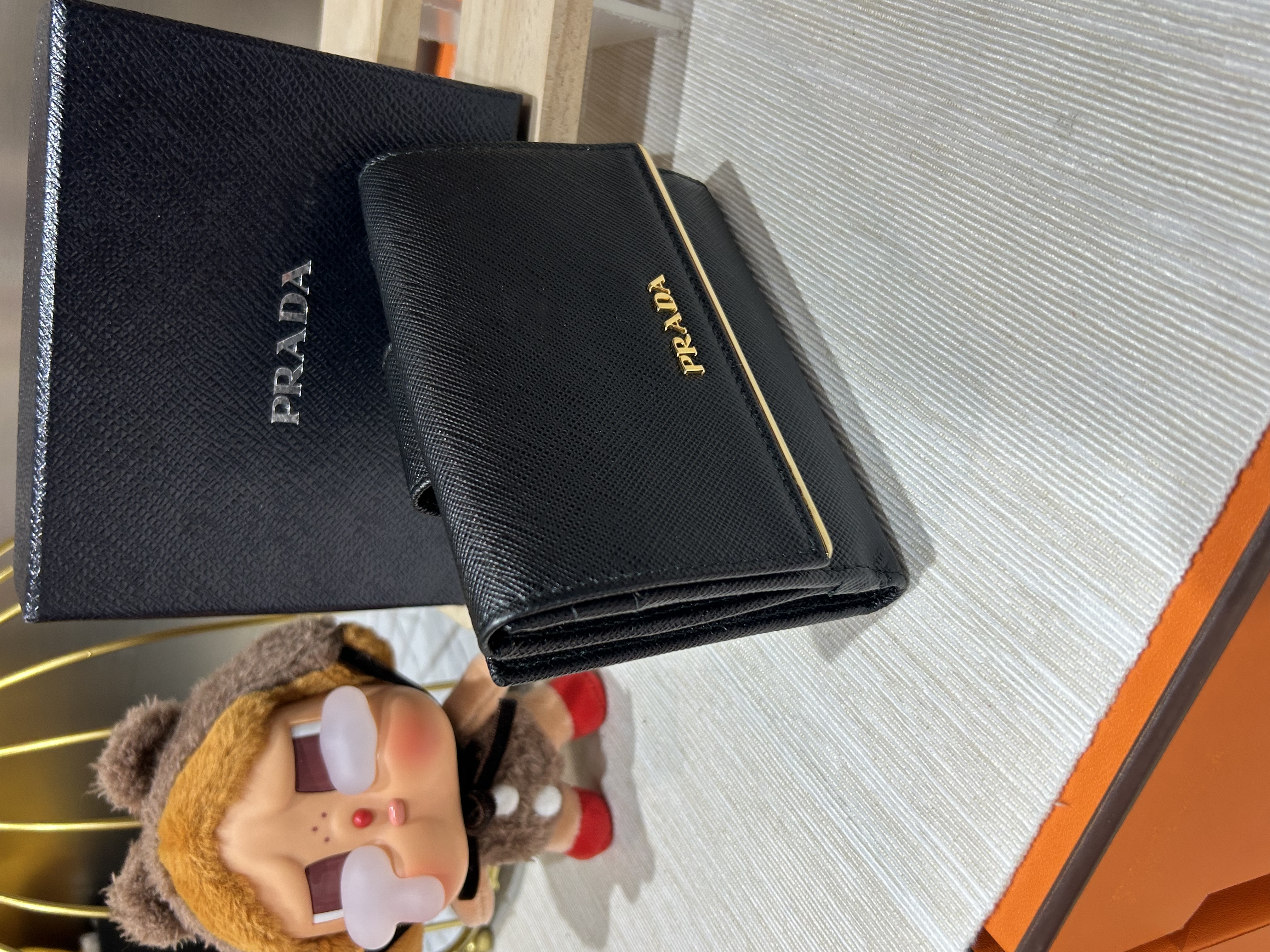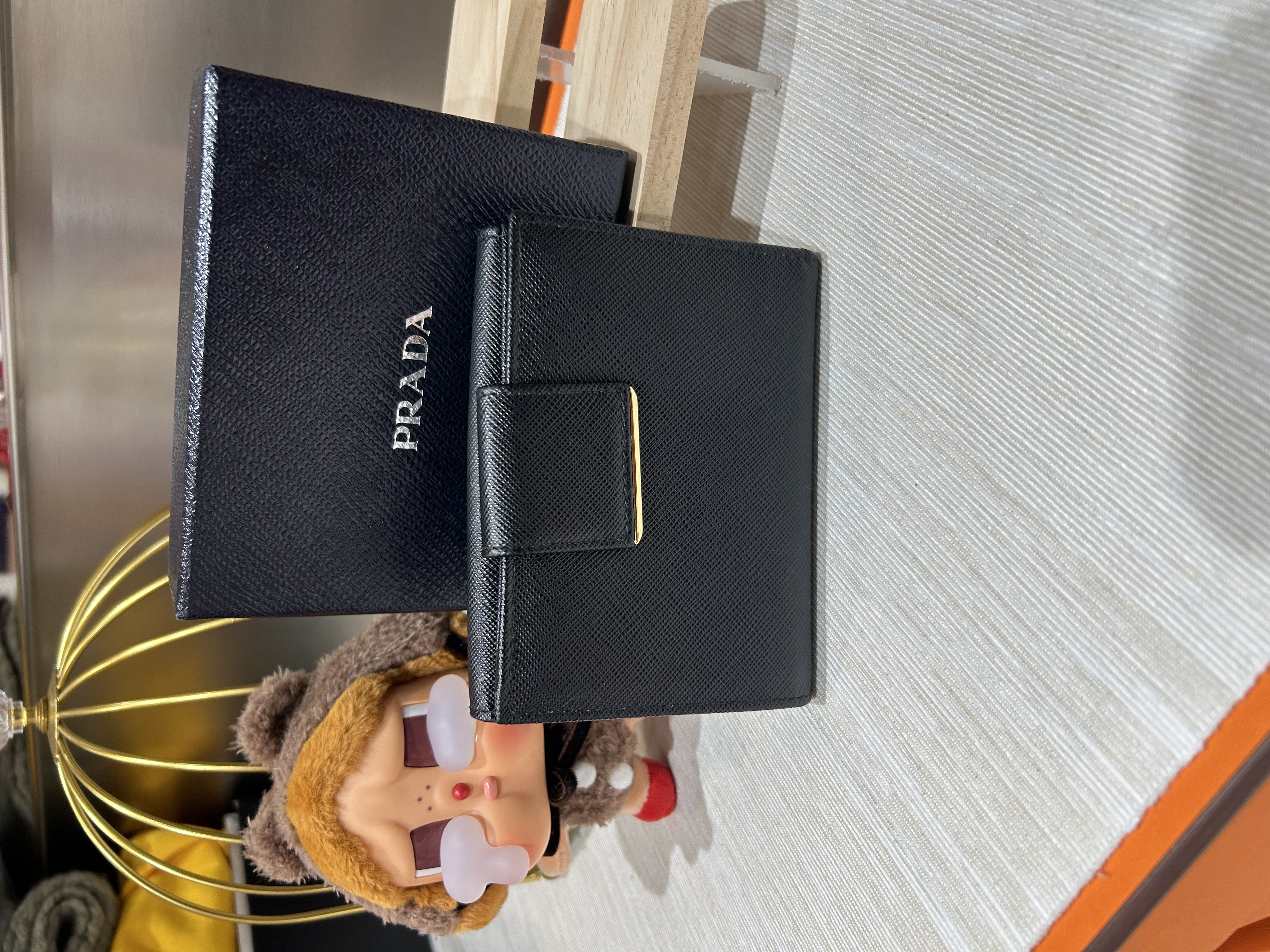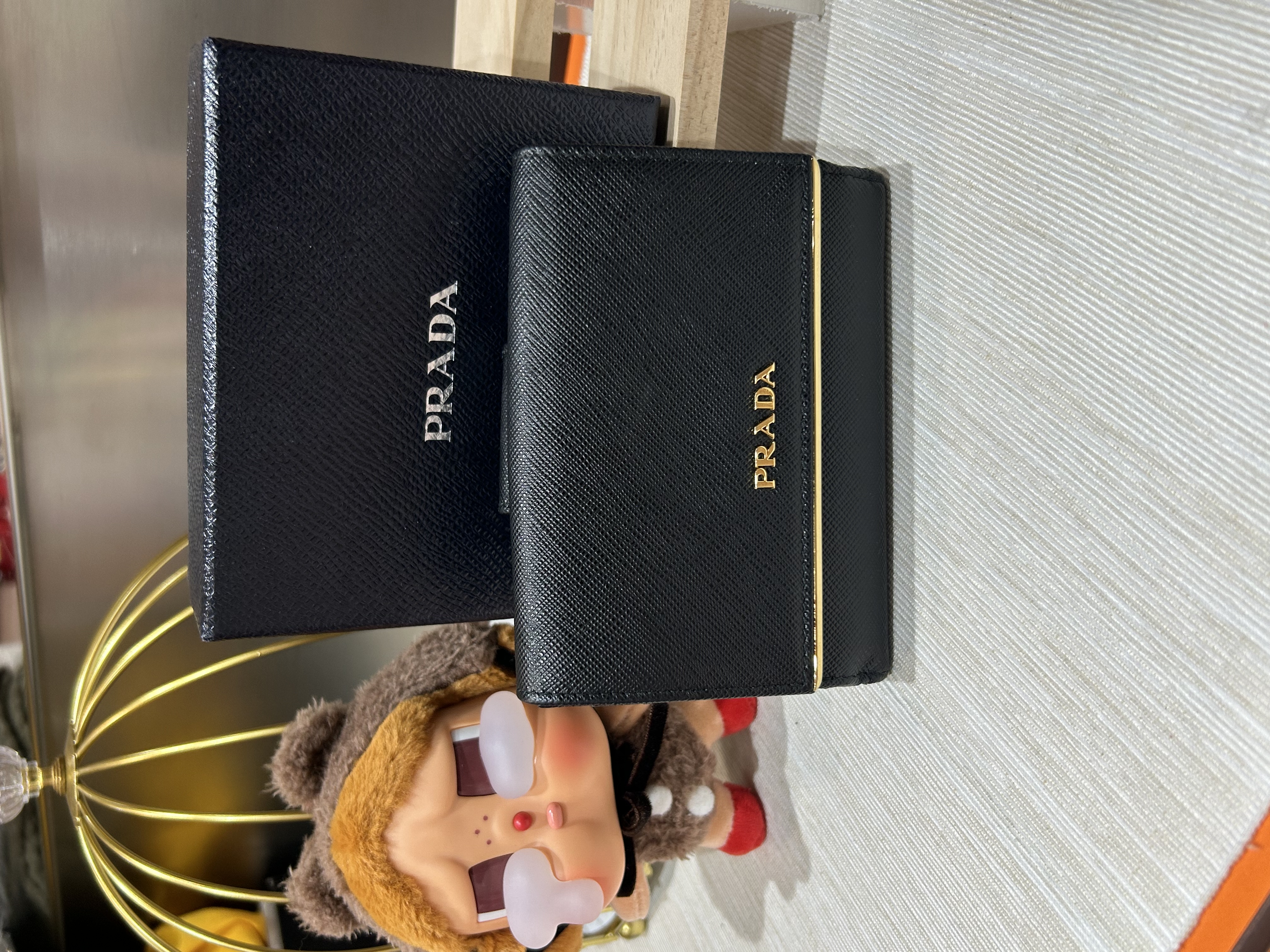 * **品牌:** Prada * **款式:** Wallet * **顏色:** Black * **材質:** 十字牛皮 * **狀況:** 98%新 * **價格:** $2180 * **配件:** Box