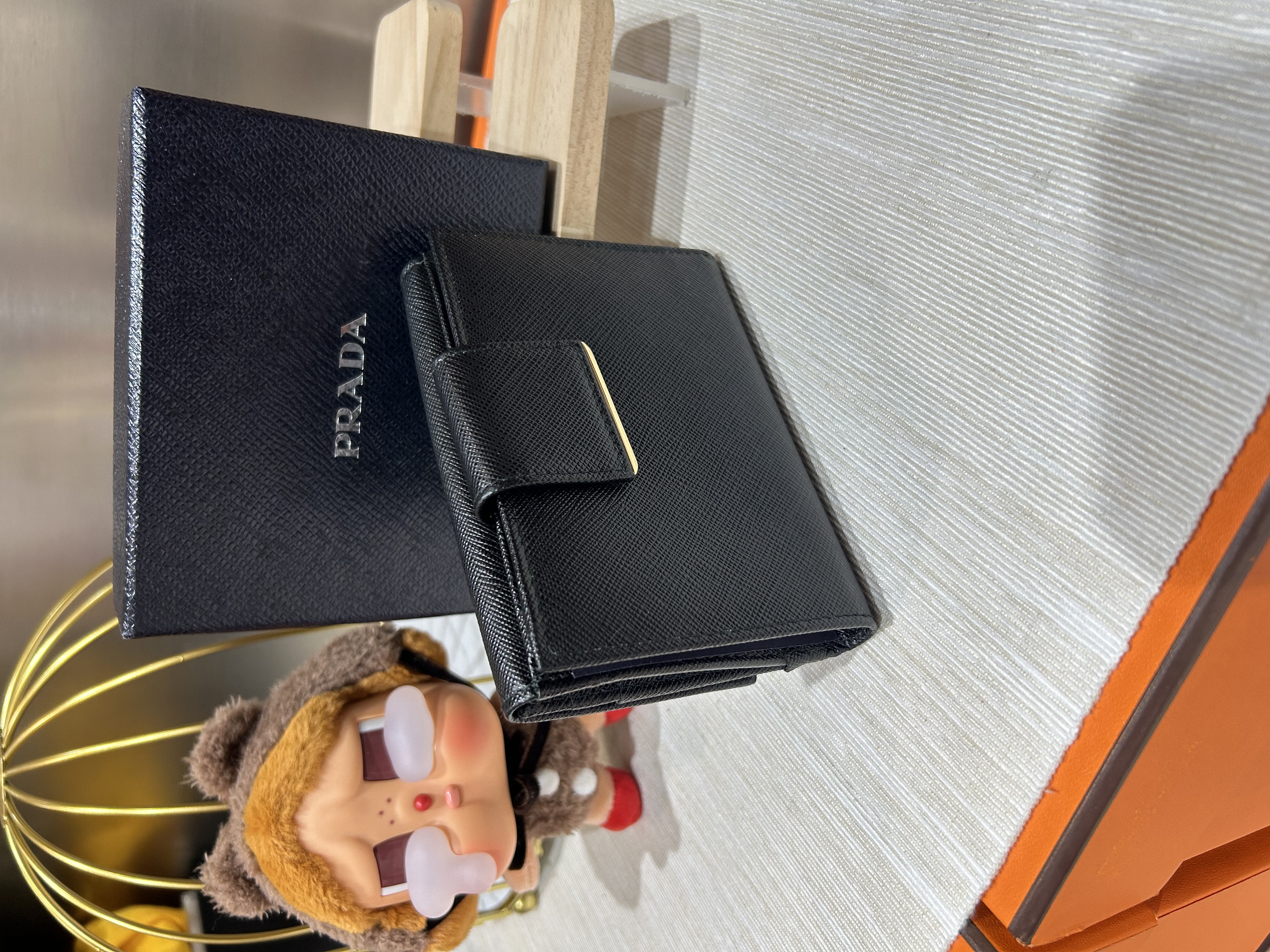 Prada wallet 黑色十字牛皮 100%Authentic ,98%new ✅box
